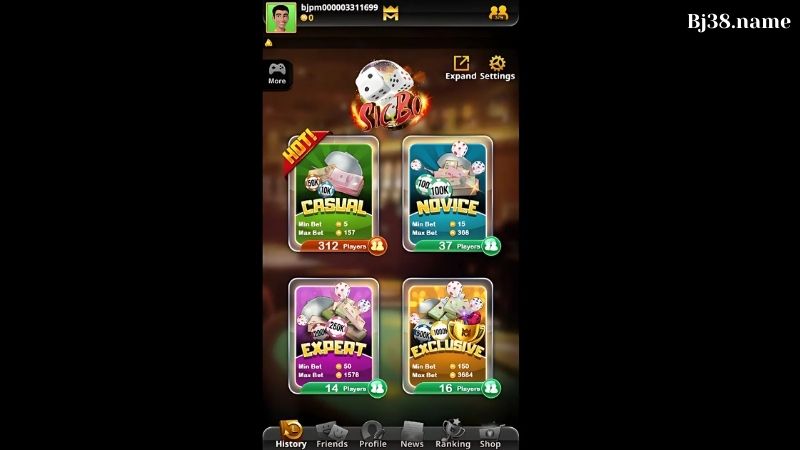 Tạo trải nghiệm hoàn thiện nhất cho người chơi, các game tại đây đều được chia thành nhiều cấp độ. Mỗi phòng chơi tương ứng với mức độ đặt cược, tỷ lệ thưởng và độ cạnh tranh. Sau đây là thông tin về 4 cấp độ phòng chơi game bài Bj38 dành cho hội viên.