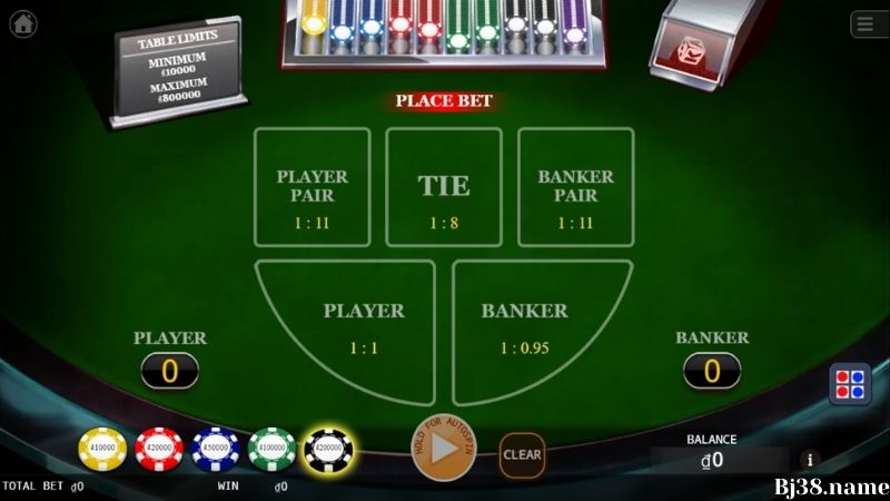 Trò chơi cá cược Baccarat trở thành một trong những biểu tượng của game bài Bj38. Đây là cái tên được rất nhiều hội viên nhà cái lựa chọn tham gia mỗi ngày. Quy tắc chơi vô cùng đơn giản chỉ cần đặt cược theo kết quả của 2 cửa banker hoặc player. Là nơi dealer chia mỗi bên 2 lá bài và tổng điểm bên nào cao hơn sẽ thắng. Bạn cũng có thể đặt cược theo đặc điểm của giá trị các quân bài.
