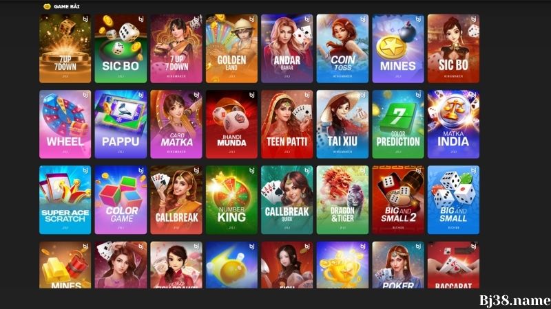 Trong kho game bài Bj38 với hàng trăm cái tên được chọn lọc kỹ càng về độ uy tín. Người chơi có thể dễ dàng tìm kiếm một bàn cược thu hút phù hợp với sở thích. Có thể tham khảo top 5 trò chơi được nhiều hội viên nhà cái săn đón nhiều nhất.