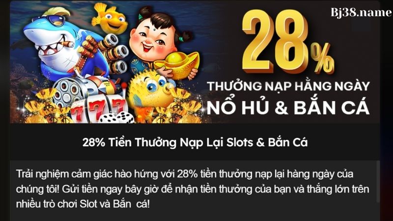 Hoàn 28% tiền nạp lại với game Slots và Bắn cá
