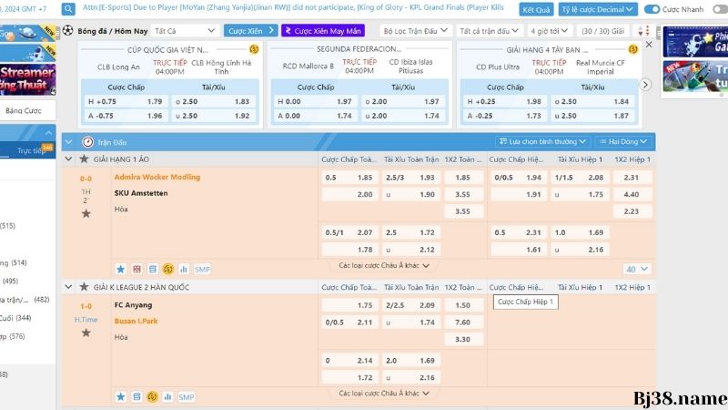 Tại sảnh thể thao Bj38, bạn sẽ được đắm chìm trong một thế giới thể thao phong phú, nơi quy tụ các môn thể thao hấp dẫn nhất từ khắp nơi trên thế giới. Bất kể bạn là fan hâm mộ cuồng nhiệt của bóng đá, bóng rổ, tennis hay thậm chí là các môn thể thao điện tử, chúng tôi đều có lựa chọn cược dành cho bạn.
